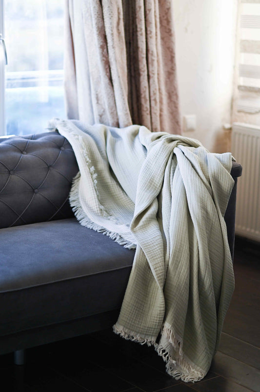 Double-Sided Muslin Blanket with Pillowcases (Sage Green & Ecru)